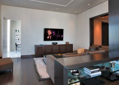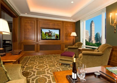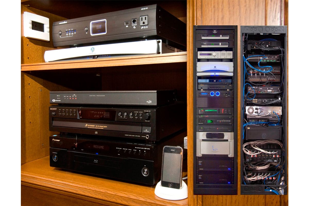 We had a distinct game plan: We wanted to place as much of the system as possible in one location to minimize clutter throughout the apartment. We also needed to control the various systems remotely through wireless controllers and touch panels. Our client was very involved in the process. Before installation, we developed screen shots for all of the touch screens. This allowed us to review all designs with the client and revise as needed – all of which added up to a completely customized and personalized experience for the client.