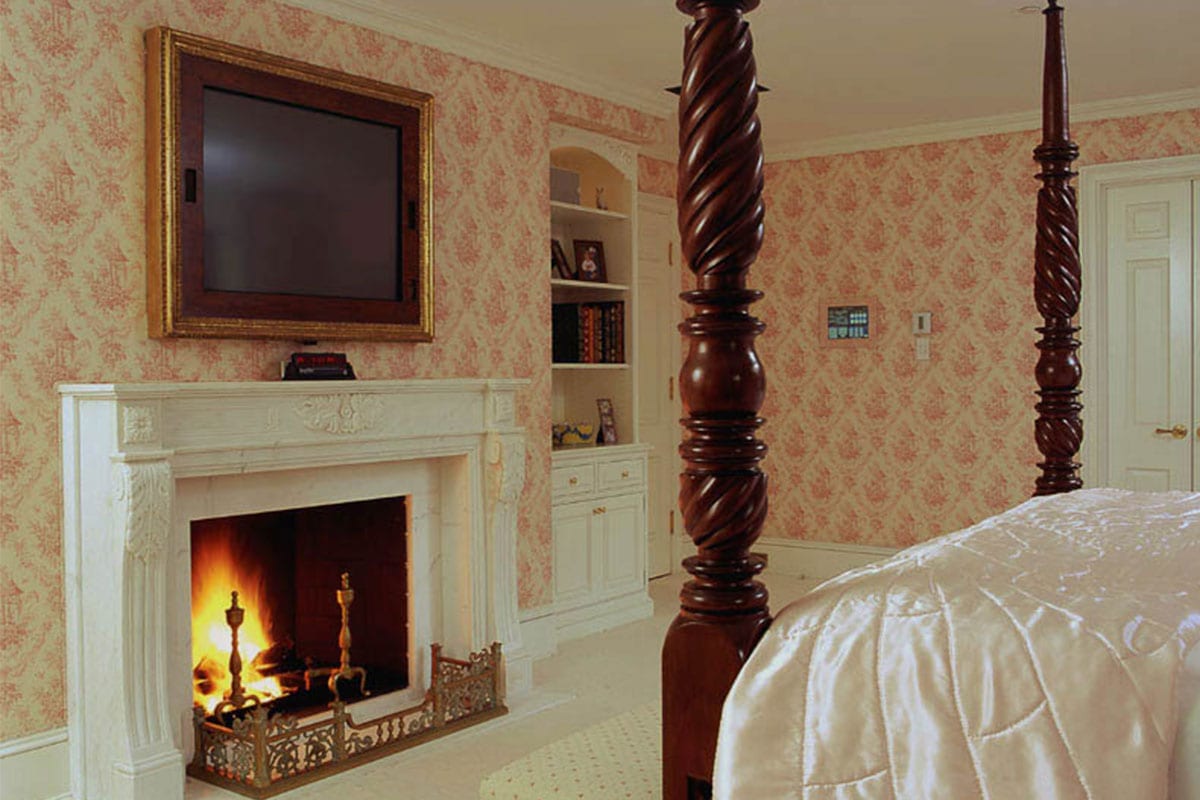 The outdoor entertaining spaces are divided into several entertaining areas, including the main terrace, outdoor dining terrace, pool terrace and a fire pit. One concern was not disrupting the neighbors with loud music. We made sure that the speaker heads were facing into the yard and strategically angled to get the best listening experience.