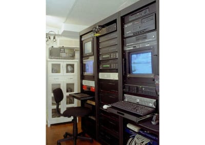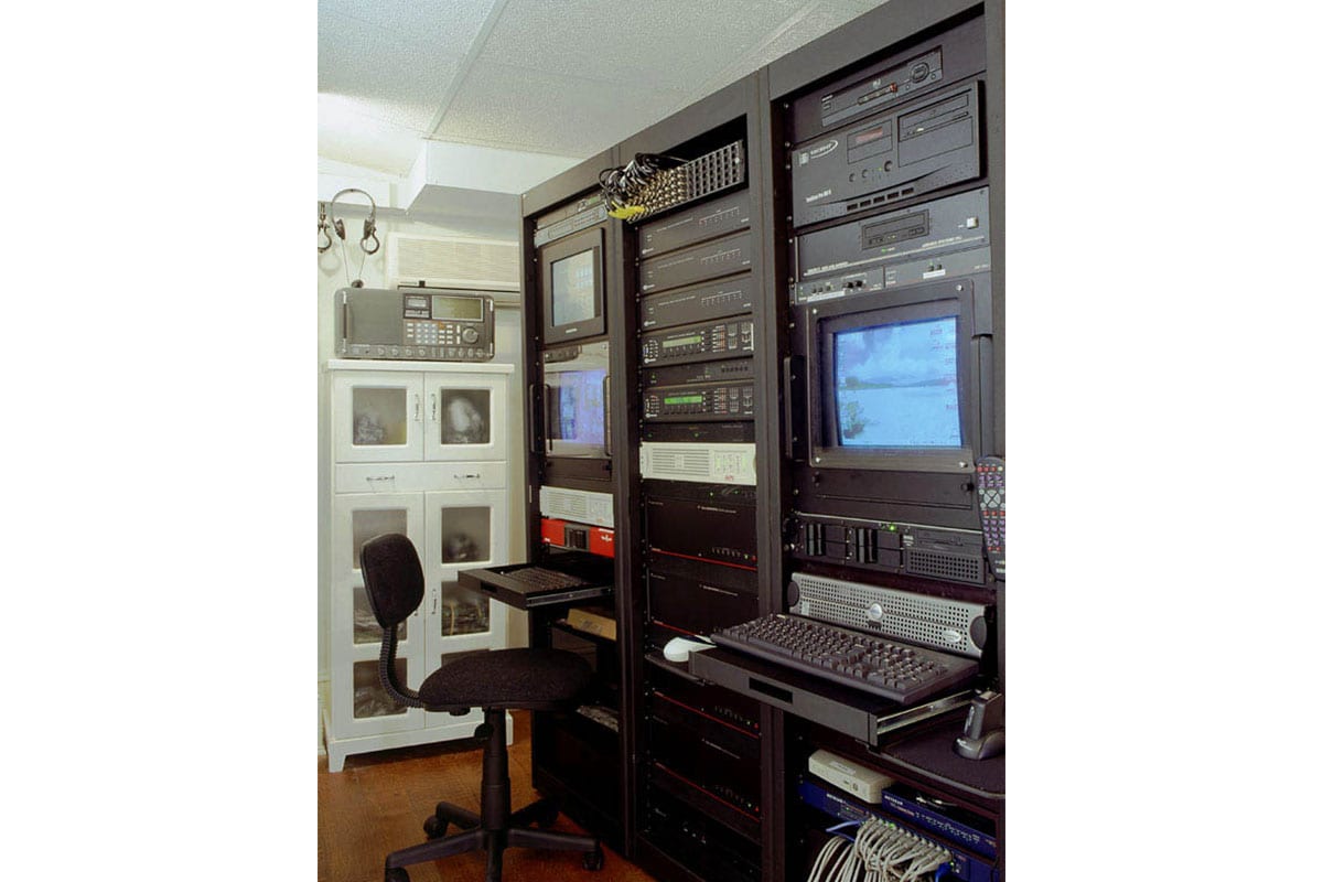 The client desired to transform a newly-purchased Brooklyn, NY building into a mixed-use space for his avant-garde wallpaper company. The first two floors would encompass a printing plant, offices and a showroom for his successful wallpaper business, with apartments for staff on the third floor. The top floor and roof deck would comprise his penthouse apartment. Because the client wanted to be able to have large parties and industry events throughout the building, he needed to have global control over music, lighting, shades, security, telephone and network. He also wanted the ability to display video throughout the building for pleasure, entertaining and work-related presentations.